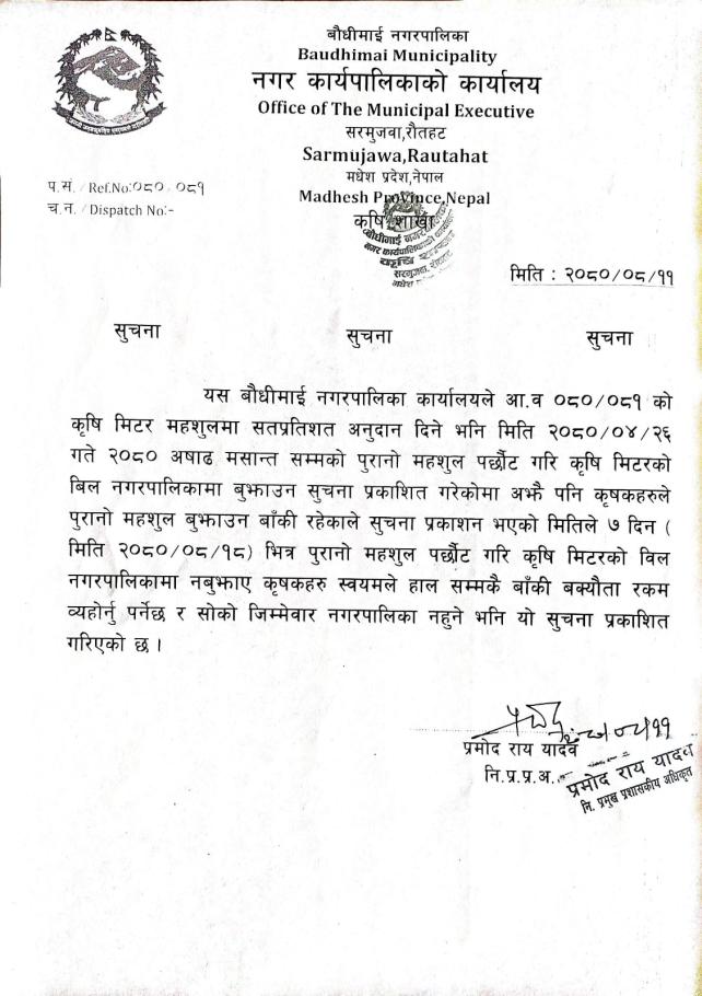 बौधीमाई नगरपालिका, नगर कार्यपालिकाको कार्यालय